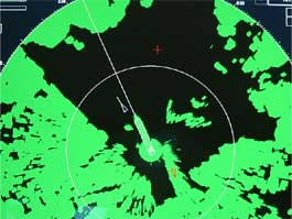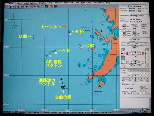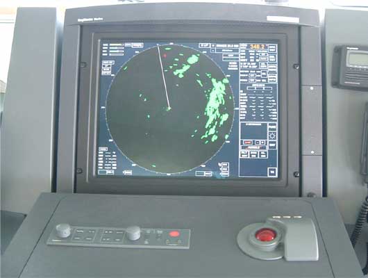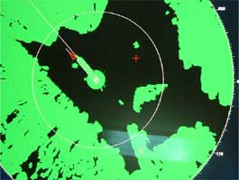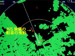 のです。レーダー画像で船首部分に AIS マークが見られますが、タグ・ボートのものと思わ