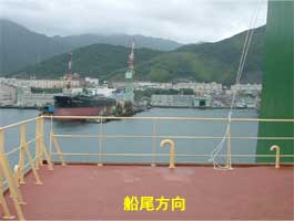 後進速力 1.4ノットで船尾が岸壁突端に並びました。機関や舵は使用せず、タグ・ボート