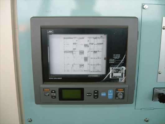 速力や水深を知るためのソナーや音響測深器などがあります。ここでは色々な航海設備が写真